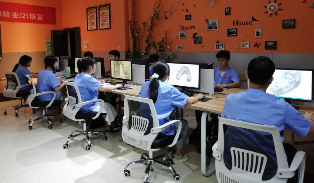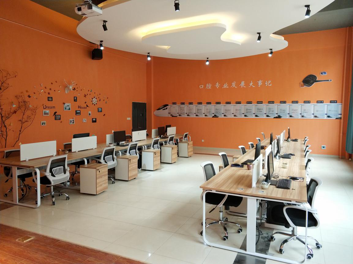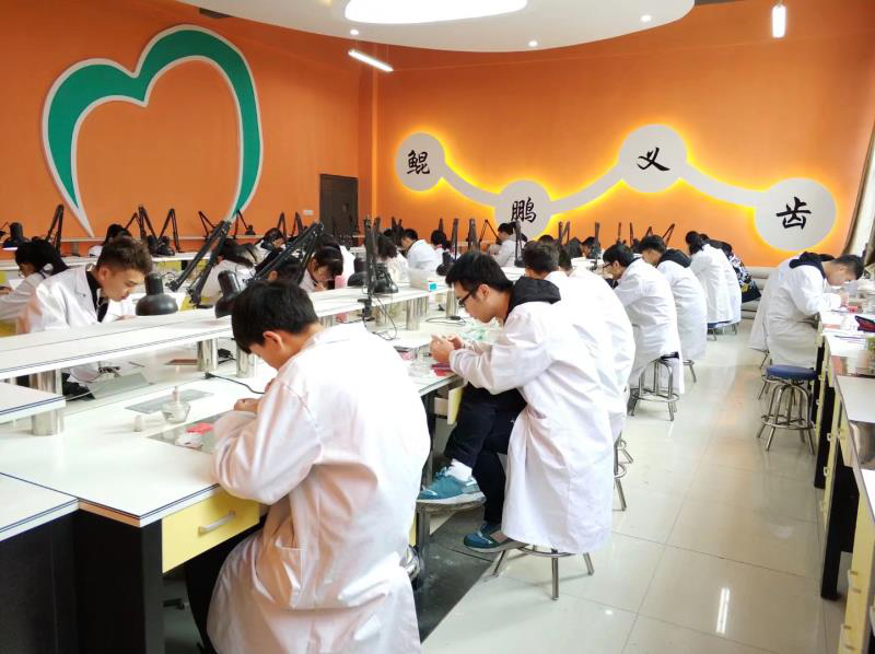 实训条件一流:2017年校企共建校内生产实训基地---“鲲鹏口腔产学研中心”。该中心以行业最前沿的数字化口腔为建设重点,集教学、生产、科研为一体,拥有口腔CAD/CAM系统、3shape口内扫描仪、陶瓷修复体制作系统等先进实训设备,设备总资产近400万元,企业数字化教学专家入校为学生的专业学习提供与行业企业零距离接触的服务。