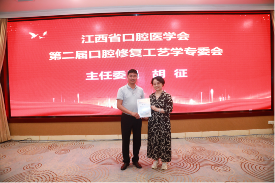 江西省口腔医学会副会长邓丽为胡征主委颁发聘书