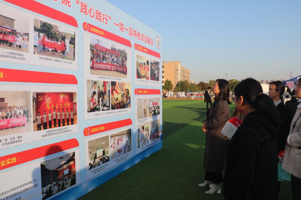 为深入推进我院“践心践行”一院一品项目化管理和品牌化建设,提升工作品牌的影响力、引导力和覆盖面,11月28日下午,伟德bv国际体育“践心践行”一院一品在田径场参加展示活动。