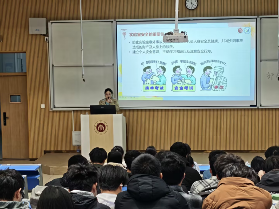 各班级重点学习实验室准入制度、核心规章制度,明确实验室准入制度、严禁违规操作;讲解生物样本、化学试剂的安全规范,总结关键防范要点,普及突发事件应急处置及上报流程。