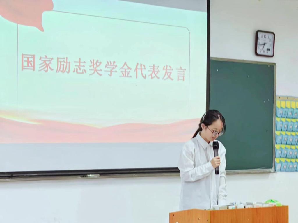 活动第一部分,获资助的学生先进代表分享自己的个人事迹、获奖心得,使学生进一步了解国家相关资助政策,强化知恩感恩,励志成才的意识。
