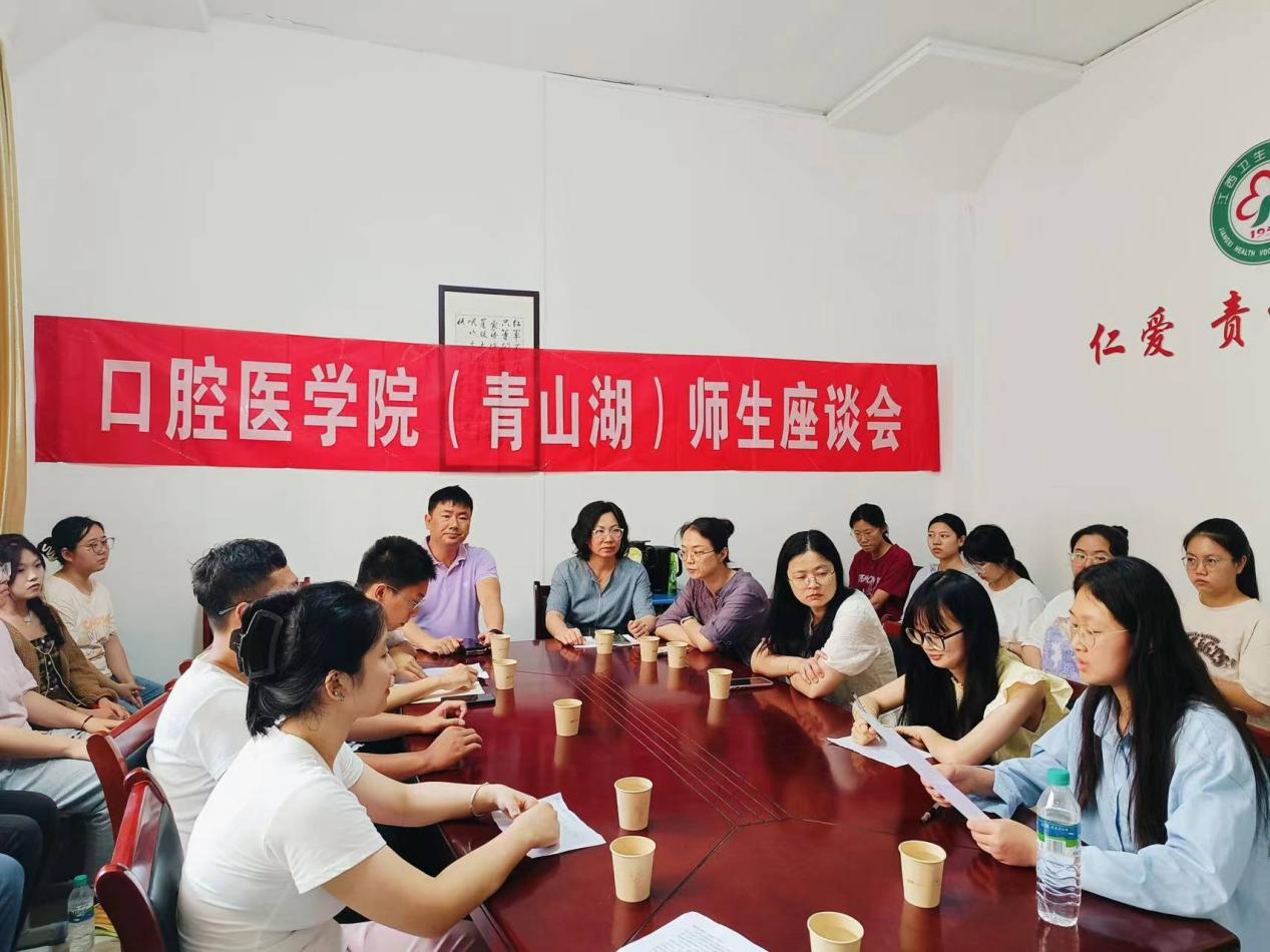 为提高教学质量,完善管理育人举措,畅通师生交流渠道,伟德bv国际体育于6月13日举行了青山湖校区师生座谈会,出席会议的有学院党总支副书记罗志红、学院副院长胡征,口修教研室、团学办负责老师,以及18名学生代表。