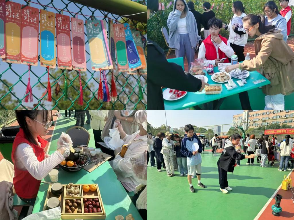 在活动现场,同学们积极参与猜灯谜游戏,品尝各式地方特色糕点,不仅激发了头脑风暴,还深刻体会了地方美食文化的独特魅力。在活动结束之后,同学们亲手绘制宫扇、领取定制竹签。