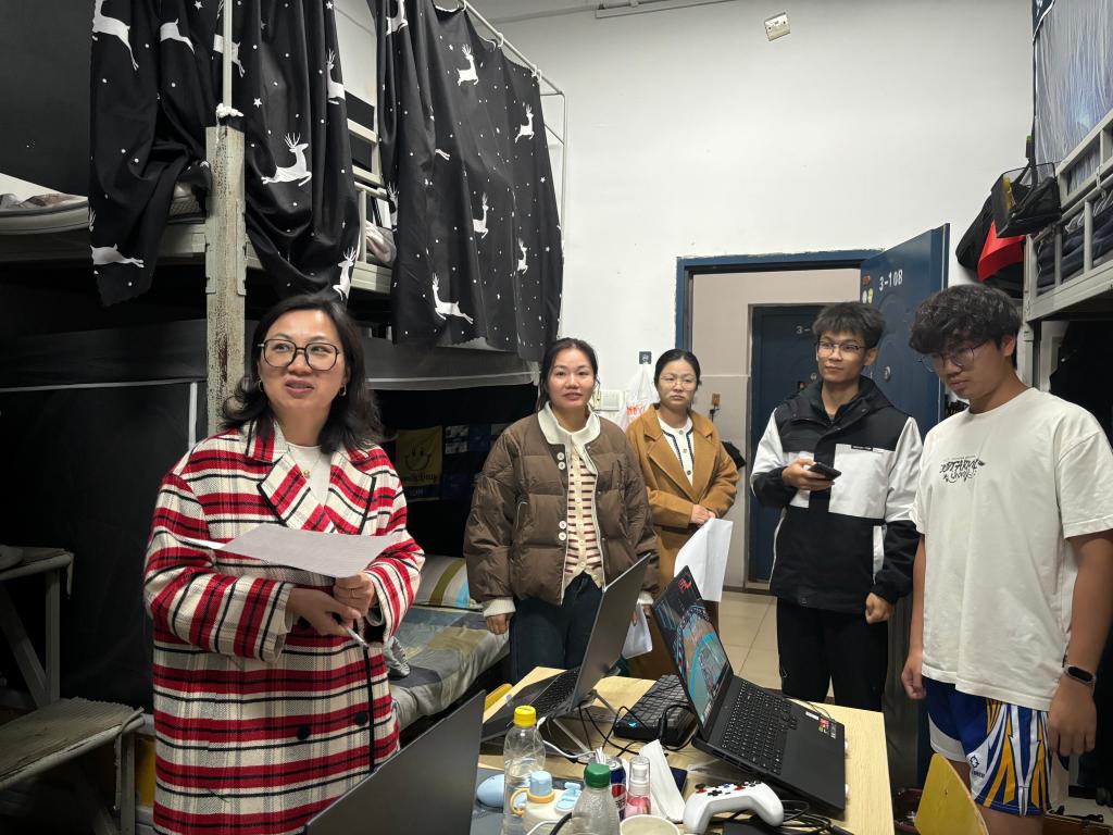 在走访过程中,罗志红与全体辅导员着重关注了学生宿舍的整体氛围,并且检查了设施安全状况和卫生清洁情况,与学生亲切交谈,关心学生的校园生活体验,叮嘱大家要注意个人安全和财产安全,鼓励大家积极融入大学生活,树立学习目标,做好学习规划,为实现人生价值而努力学习。