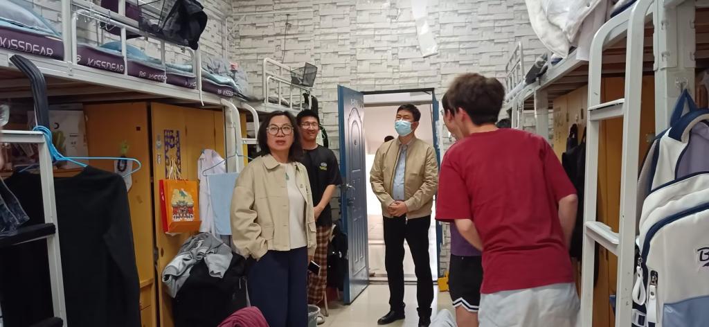 会后,罗志红及学院副院长胡征一行来到学生宿舍,重点对宿舍用电安全、卫生环境等进行了逐一细致检查。检查期间,院领导与同学们亲切交流,认真听取对学院管理服务工作的意见建议。同时要求同学们要树牢安全意识,自觉遵守宿舍管理规定,共同维护良好的生活环境,确保宿舍安全卫生。