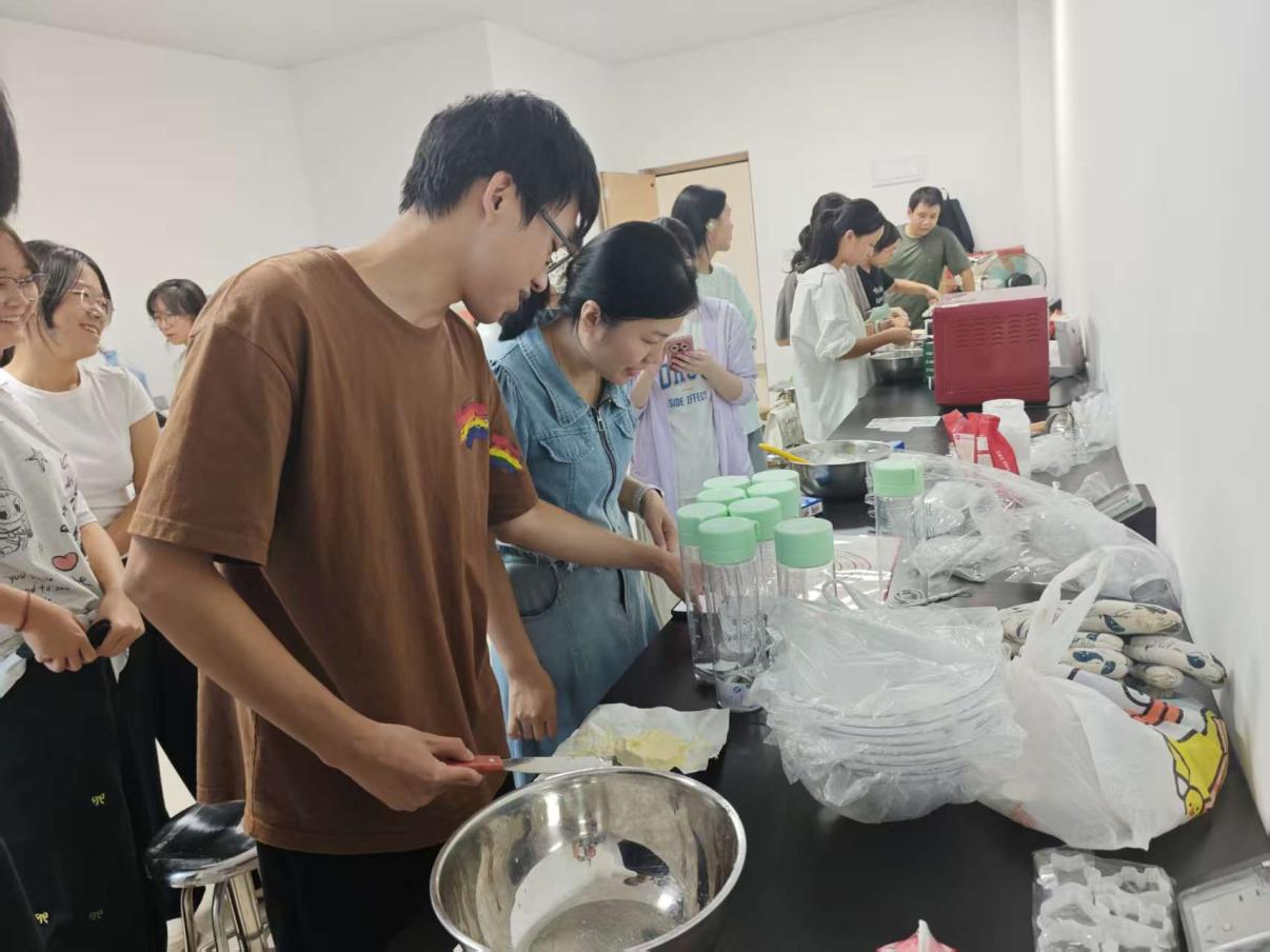 学院领导、老师与新生共同围坐,一起品尝烘焙甜点,与新生们交流烘焙过程的感受与收获,以及新生们初入大学的想法。学院领导寄语新生们:一是既要扎实学好专业知识,打牢成长根基,也要多参加社会实践、学科竞赛或学术讲座,把理论知识和实际应用结合起来; 二是要快速适应集体生活,主动与同学、老师沟通,同时要规律作息、适度运动,通过社团活动丰富生活,更快融入校园;三是要明确自己的追求,从制定短期小目标开始,再慢慢明晰长期方向,让大学生活有规划、不迷茫。