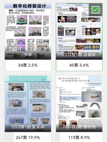 活动共收到学生作品近50份。有的聚焦数字化义齿设计与制作,有的聚焦隐形矫治、智能种植,有的聚焦口腔疾病临床诊疗。作品图文并茂,展示了实习生的精神风貌和收获的喜悦,体现了扎实理论与熟练技巧的紧密融合。