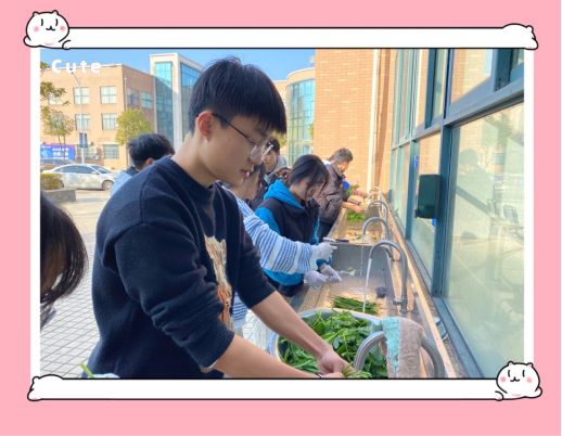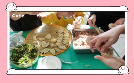 活动现场,同学们纷纷捋起袖子,跃跃欲试。辅导员张鑫淼老师讲解了和面的方法,同学们很快掌握要领,巧妙的将面粉变成了白嫩嫩的面团。另一些同学负责制作馅料,那刀法令同学们连连称赞,不一会整齐并排的葱姜末和各种馅料都准备齐全了。接下来就是包饺子环节啦,只见同学夹起馅,捏起饺子,十指翻飞之间,一只只精巧的饺子就诞生了。短短半个小时中,就已经包了满满一大盘的饺子。同学们兴奋地交流,认真地操作,探讨心得,过招切磋,大家的脸上都洋溢着兴奋与自豪。