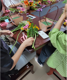 此次花艺活动不仅能陶冶情操,并在国庆重阳双节之际提升了同学们的家国情怀。