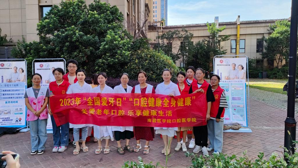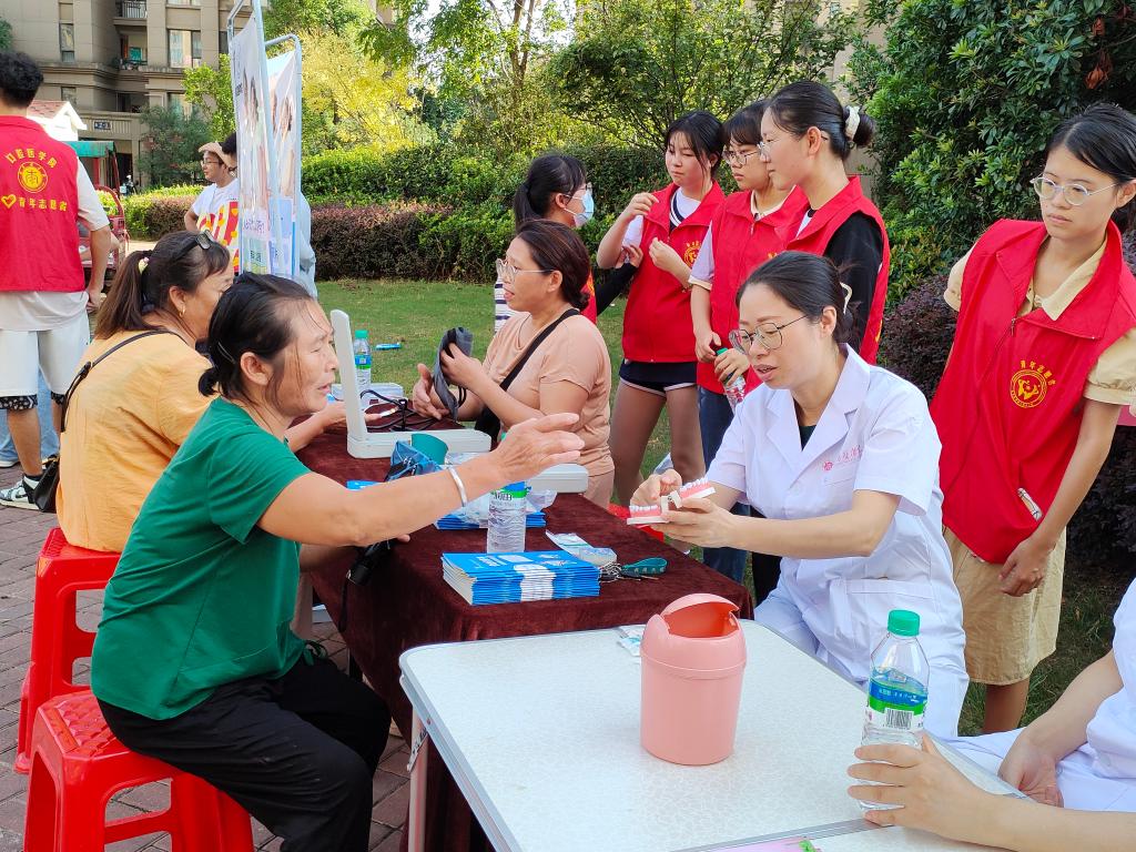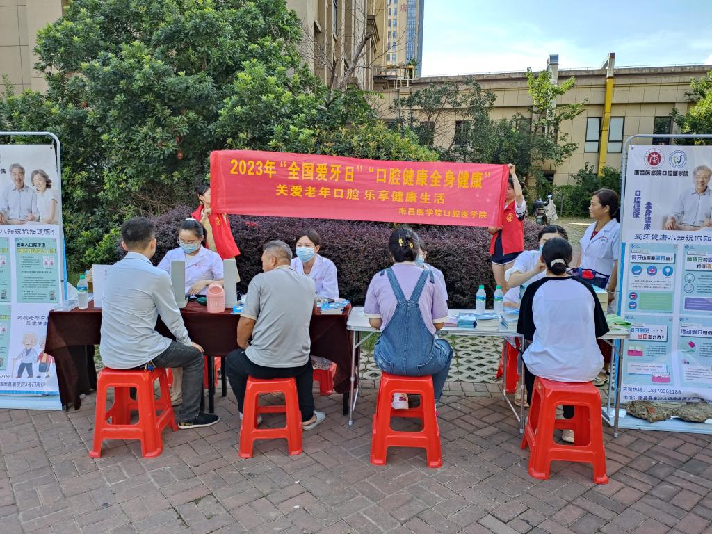 今年全国爱牙日的主题为“口腔健康 全身健康”,副主题为“关注老年口腔 乐享健康生活”。在南昌县力高澜湖郡社区,南昌县疾病防控中心领导亲临现场指导,伟德bv国际体育教师和学生志愿者们向社区老人、来往群众和小朋友发放了宣传资料,“一对一”为老人进行测量血压、口腔义诊,详细讲解口腔健康知识,现场演示正确的刷牙方法,广泛普及爱护牙齿的重要性,并免费发放小礼品。