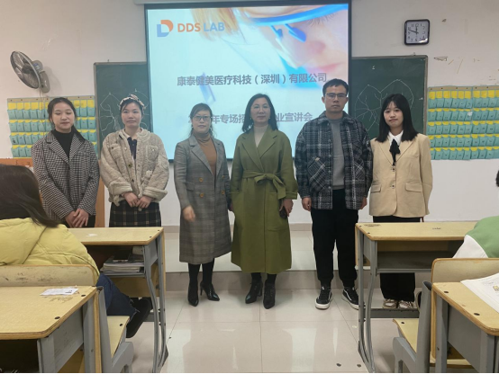 为贯彻落实党中央、国务院“稳就业”“保就业”决策部署,进一步加强校企合作,促进口腔医学技术专业现代学徒制办学发展,2021年12月21日上午,康泰健美医疗科技(深圳)有限公司的领导莅临我校,为我院21级口腔医学技术专业同学开展企业宣讲。口腔医学院党总支牵头人罗志红、班级辅导员兰勇强等出席本次活动。