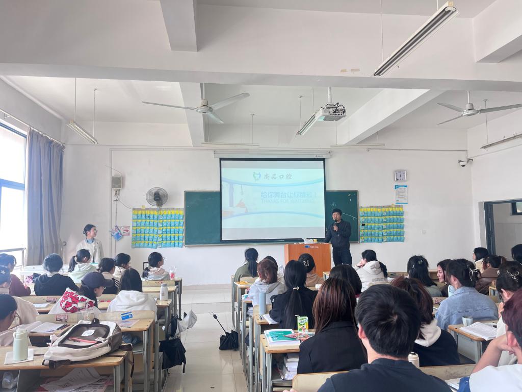 为进一步搭建校企人才沟通合作平台,拓宽学生就业渠道,鹰潭月湖区尚品口腔门诊部于3月28日中午在3号教学楼507召开专场招聘宣讲活动,门诊代表吴医生、学院就业干事朱玲老师及伟德bv国际体育部分学生参加。